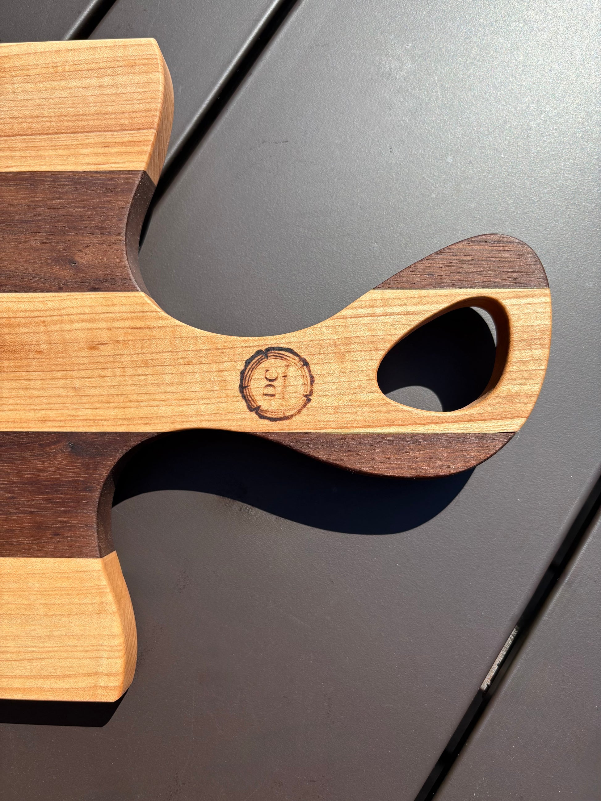 Crafted from rich Walnut and sturdy Oak, the Heirloom Stripe charcuterie board combines durability with timeless elegance.