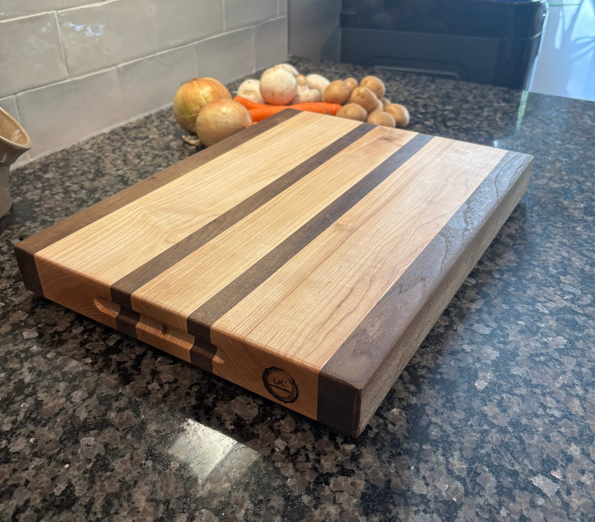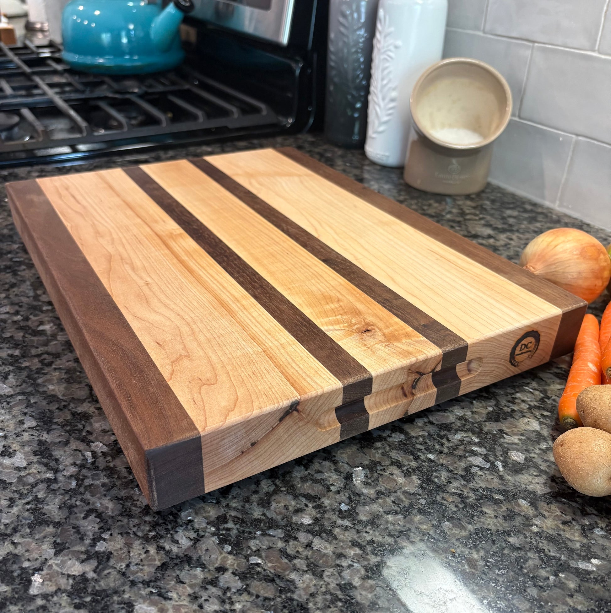 Bring warmth and elegance to your kitchen with the Might Oak cutting board. Crafted from rich Walnut and sturdy Oak, its unique grain patterns not only enhance durability but also add a touch of natural artistry to your food prep.
