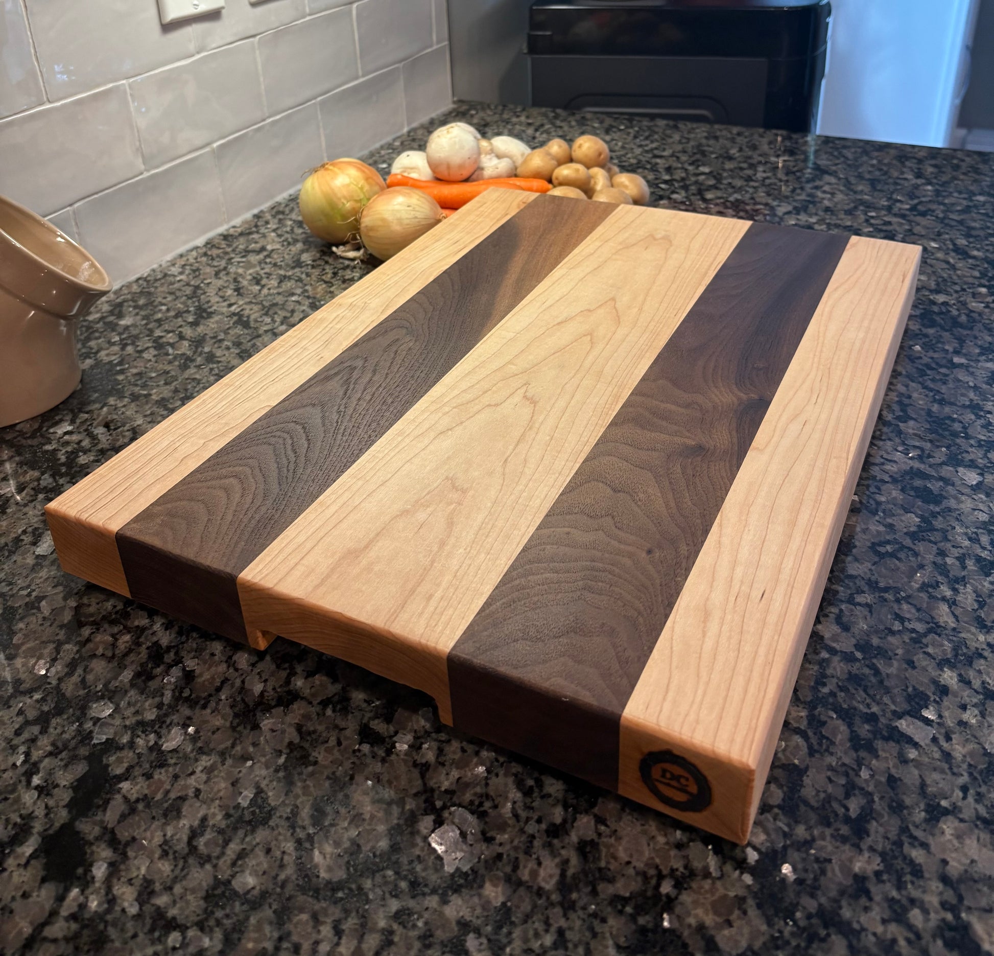 Elevate your kitchen experience with this Walnut & Maple Cutting Board, crafted for durability and timeless style.